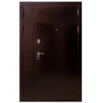 В-третьих, это усиленная конструкция. Полотна изготавливаются с гнутыми профилями. Это предотвращает его деформацию при воздействии огня. С обеих сторон дверного полотна используются металлические пластины толщиной 1,5 мм. Дверное полотно и дверная коробка снабжены специальными уплотнителями, защищающими от холодного и горячего воздуха. Полотно и внутренняя часть коробки наполнены минеральной ватой . Как правило, двери оснащены огнеупорным замком и несъемным элементом.
